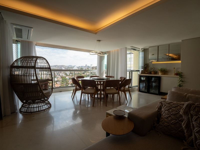 São 197m3, com 4 quartos (2 suítes + 2 semi-suítes), varanda gourmet, ar central e 4 vagas de garagem com box de despejo.