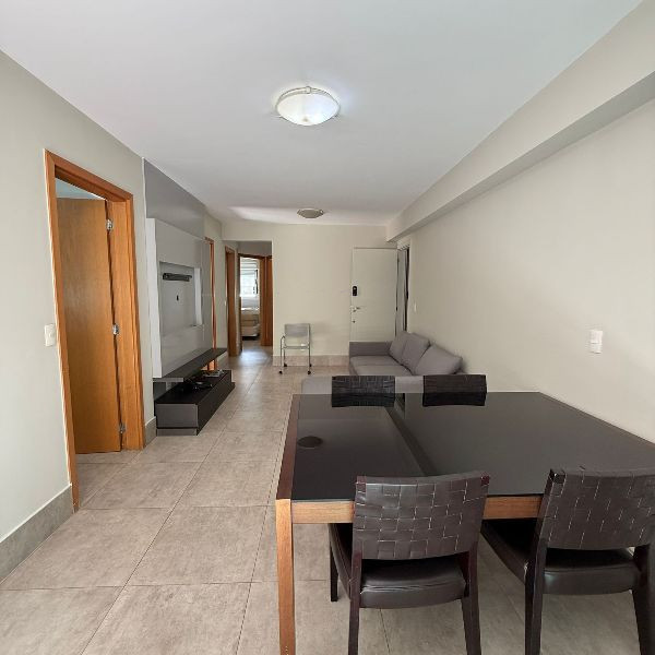 - Sala para 02 ambientes com Sofá de 02 lugares, mesa para 04 pessoas;